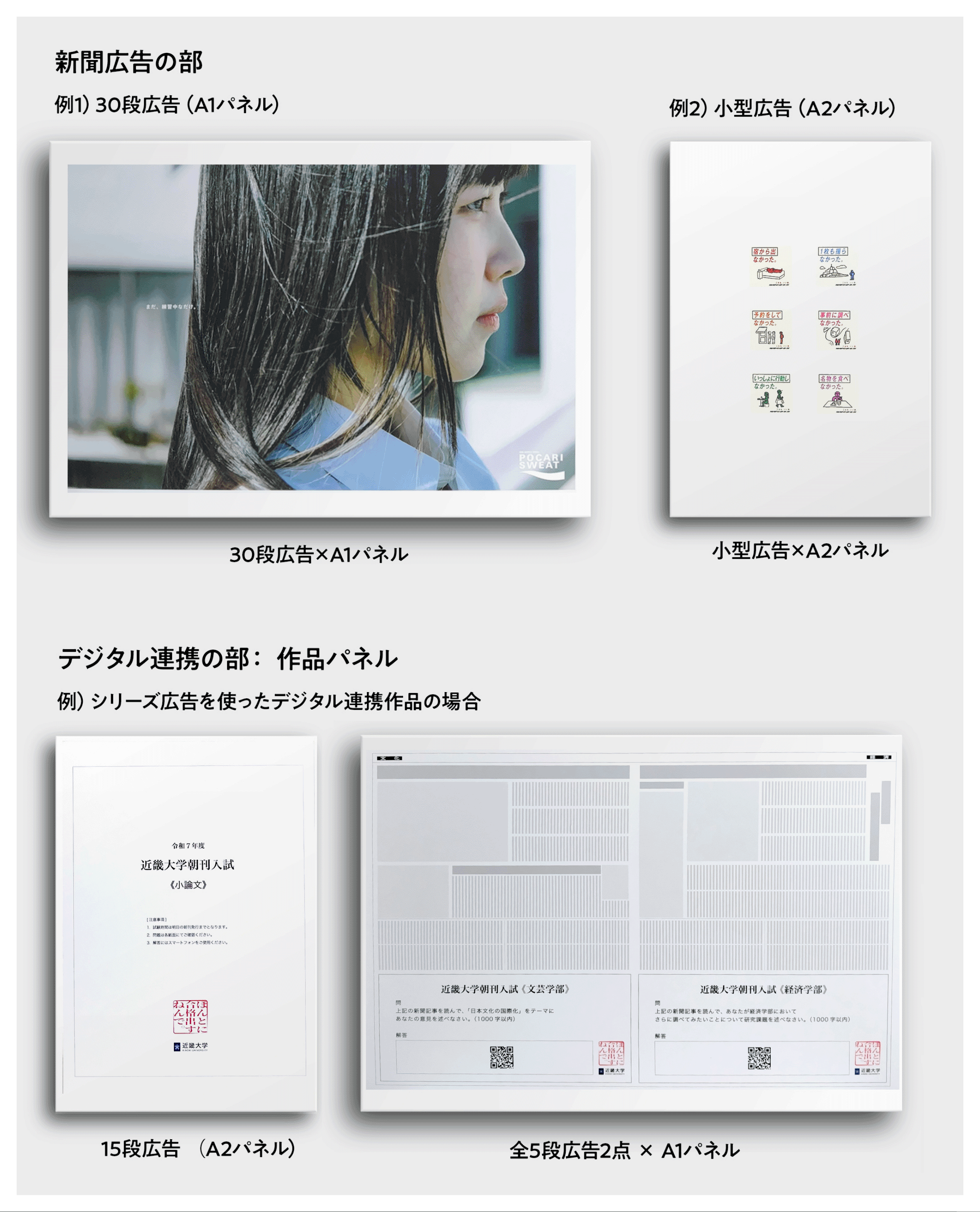 ※パネルに⾊や⽂字の指定のみが書かれ、テキストや画像が別添となっている作品、およびパネル裏⾯にまで表現が及ぶ作品は選考外となります。